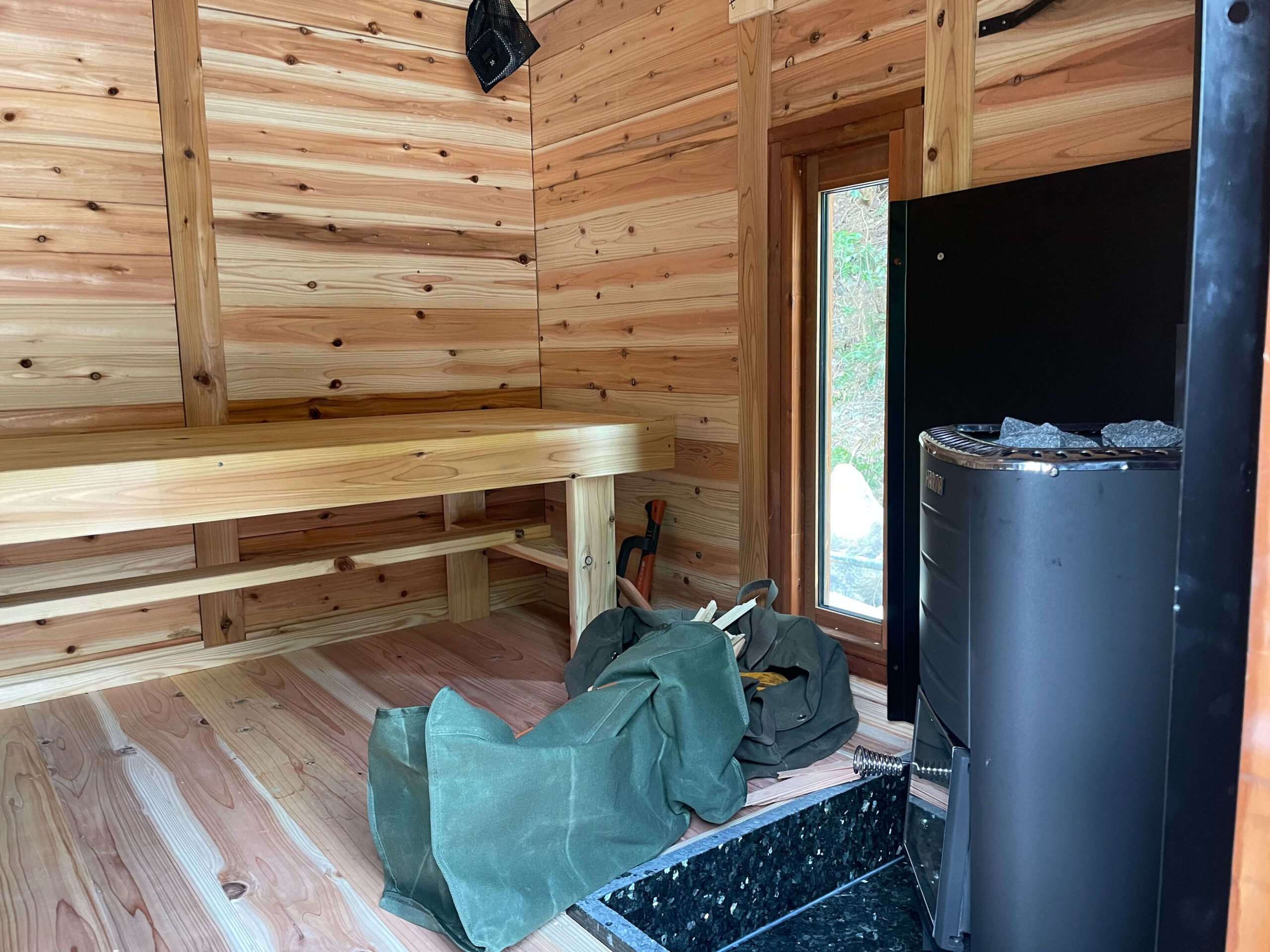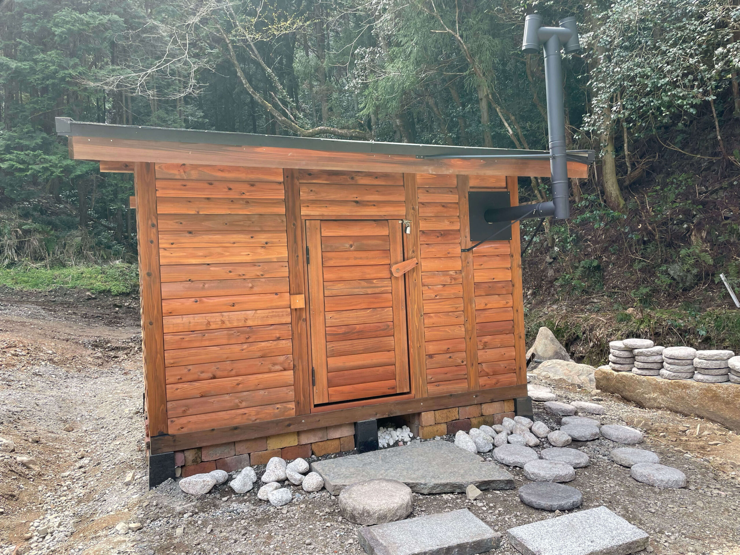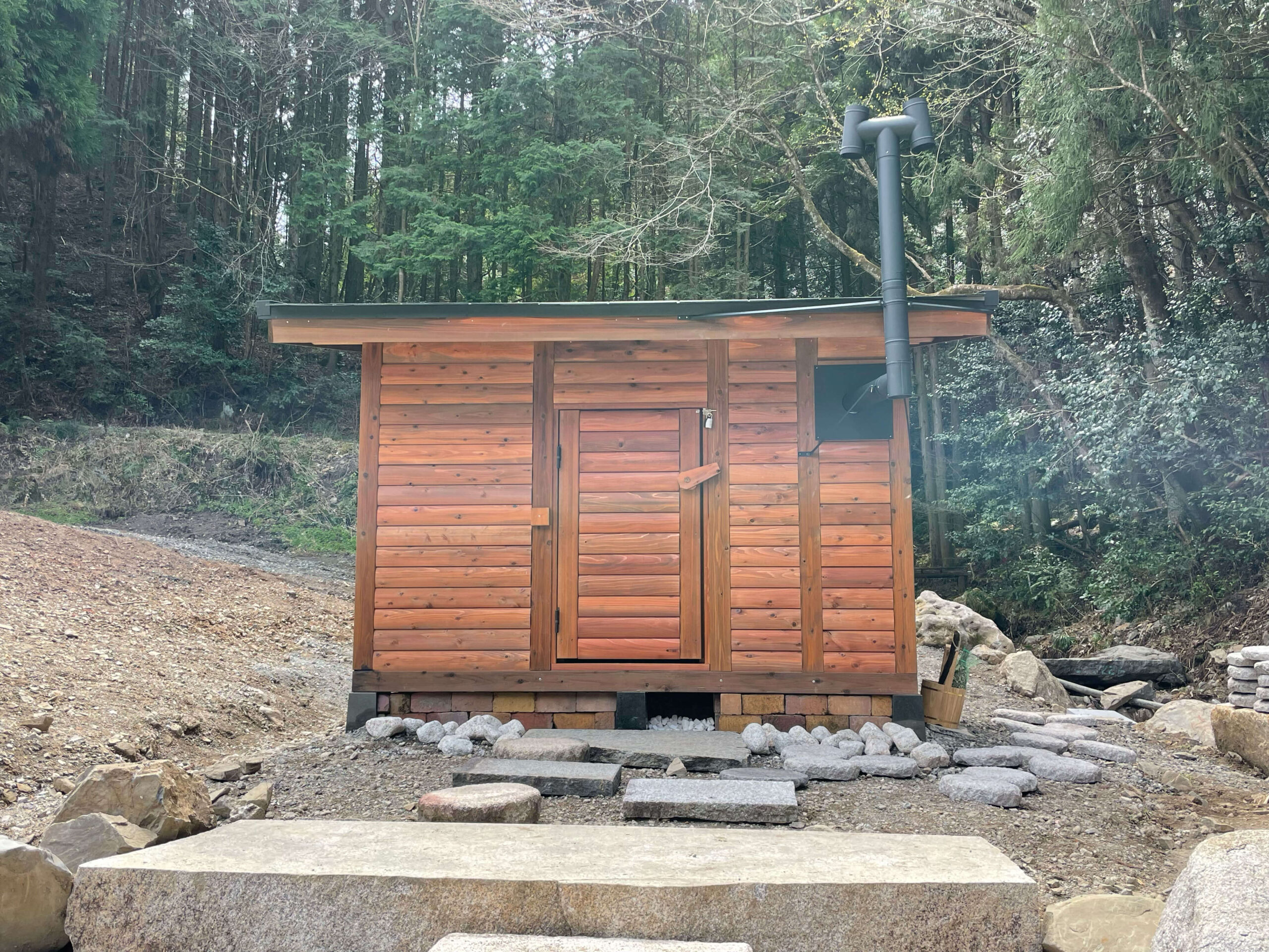 小屋の中は高温でも息苦しさがなく、心地よい湿度に包まれてリラックスできます。家族で使っていますが、皆が大満足です。